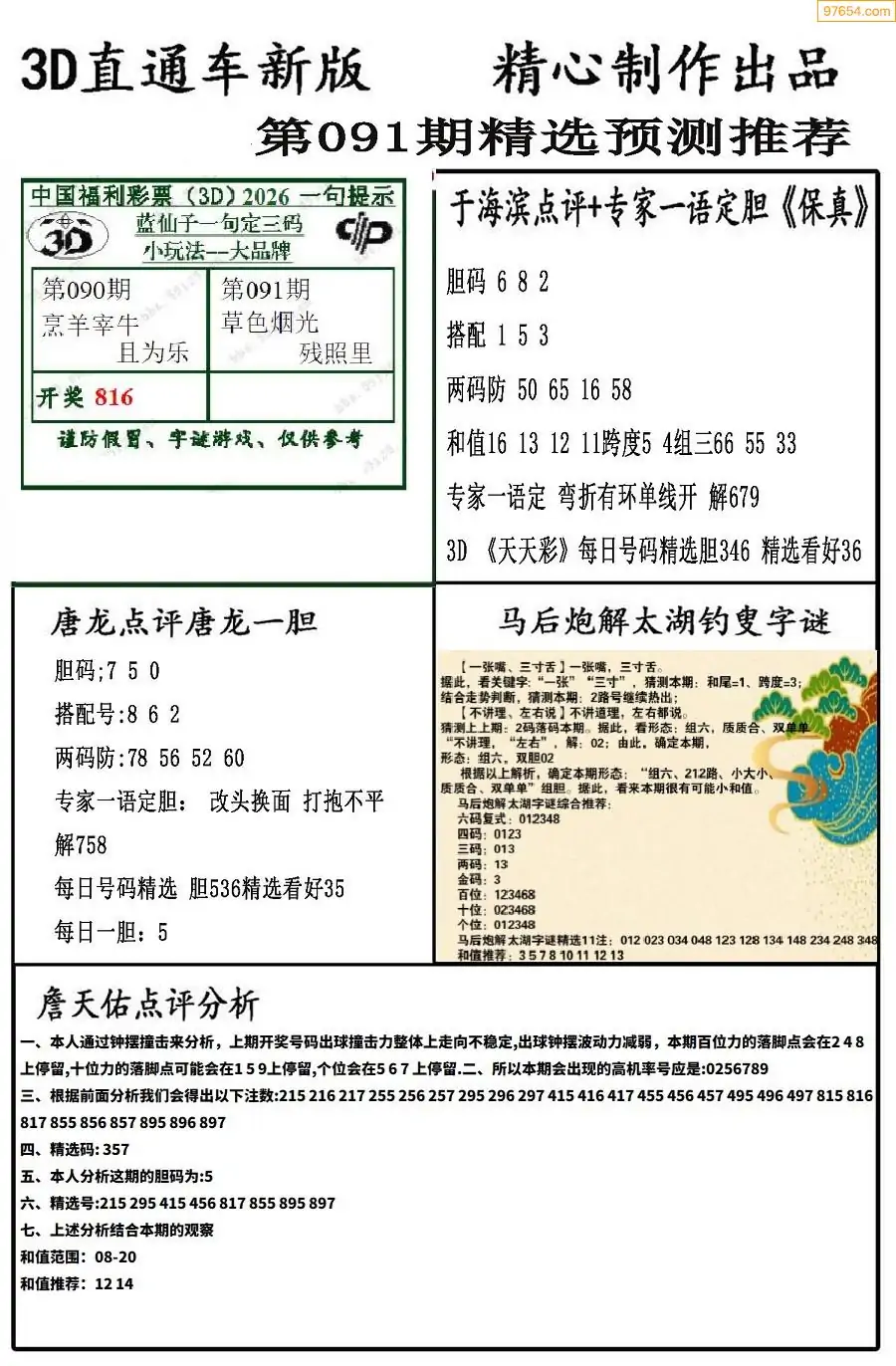 26年091期3D各板块资料整合汇总
