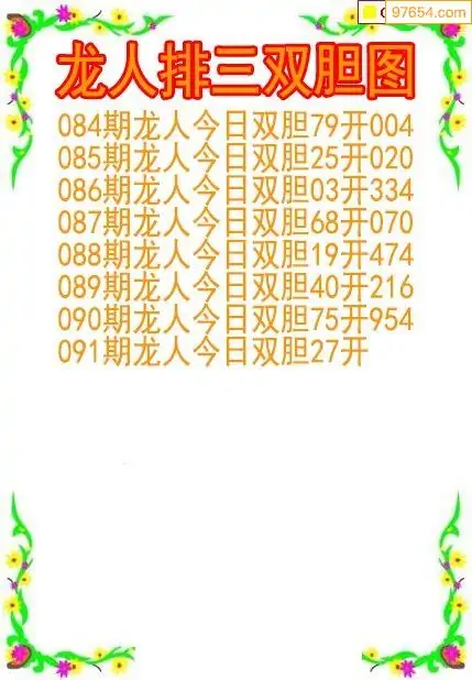 26091期龙人排列3双胆图