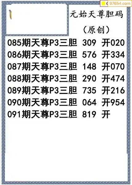 26091期元始天尊排列3胆码图