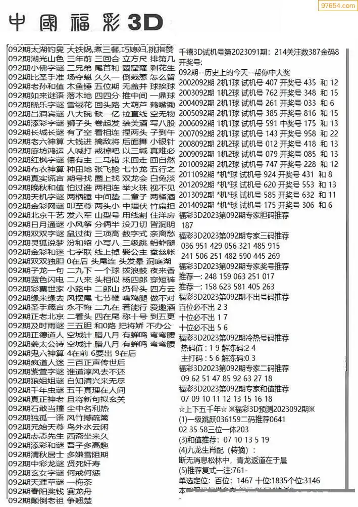 26年092期3D各板块资料整合汇总