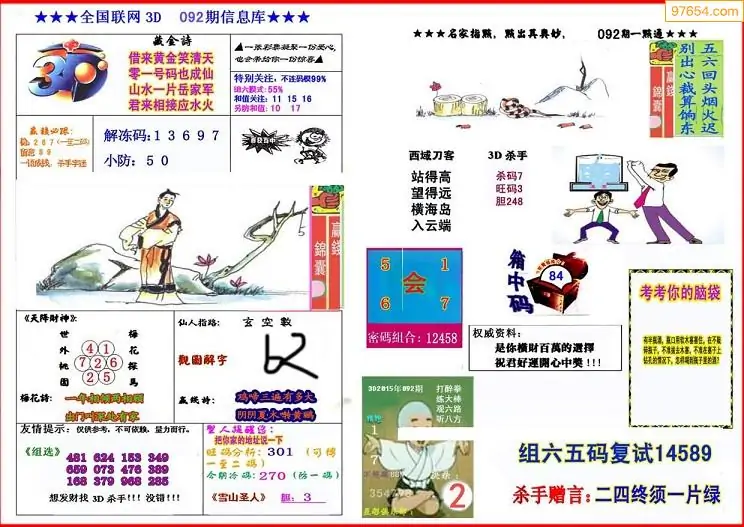 福彩3D092期天牛彩吧套图整合总汇