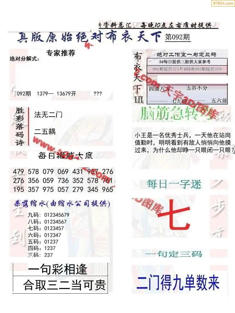 092期真版布衣神算专家推荐
