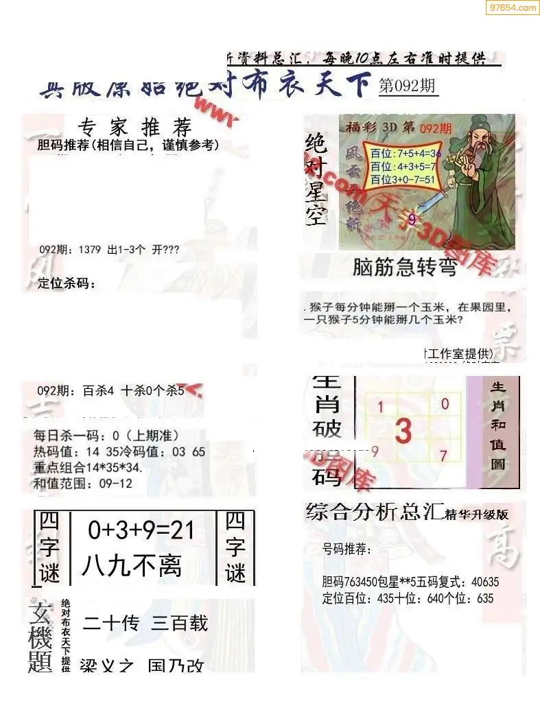 福彩092期3d真精华布衣+布衣早报(转载)