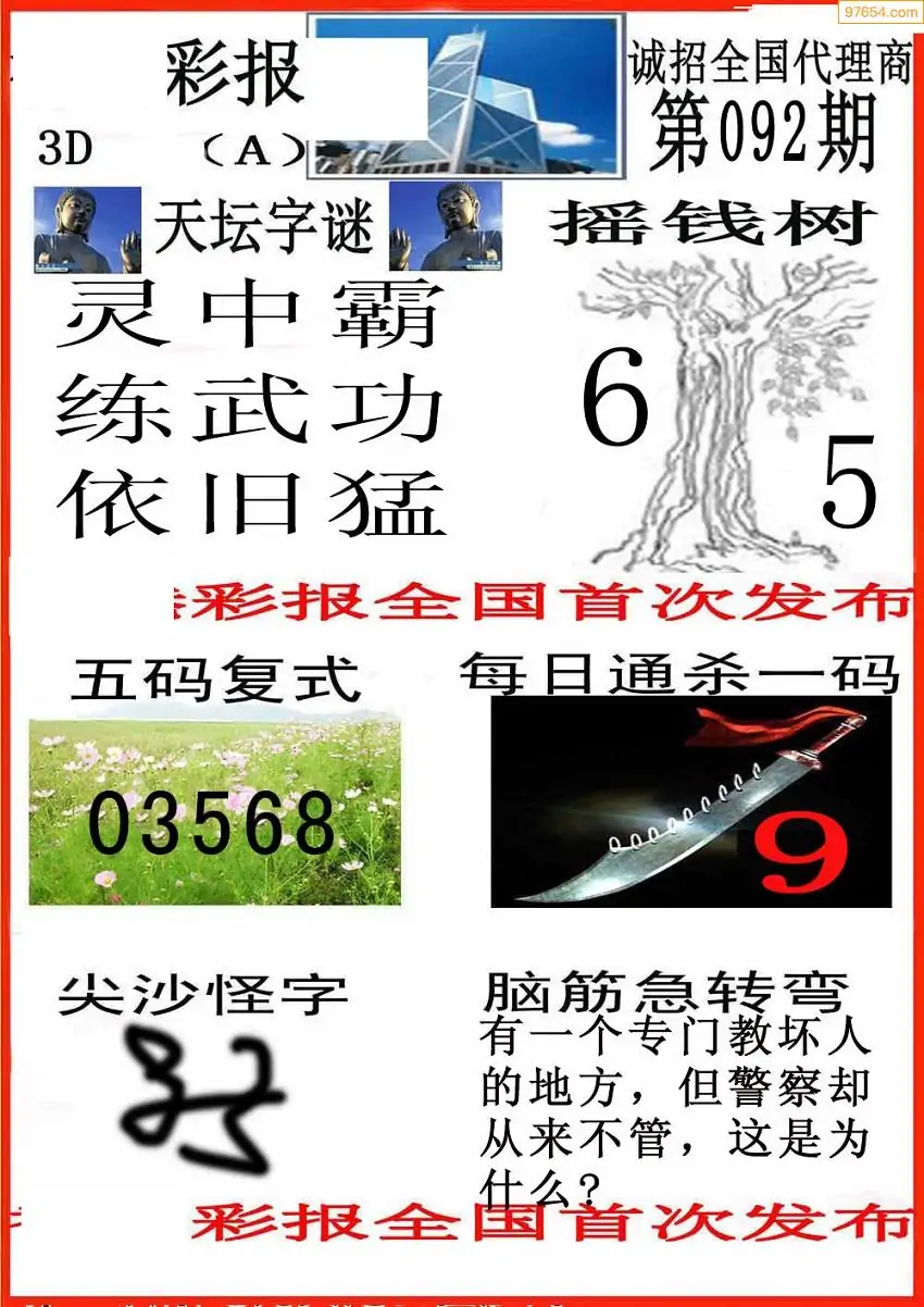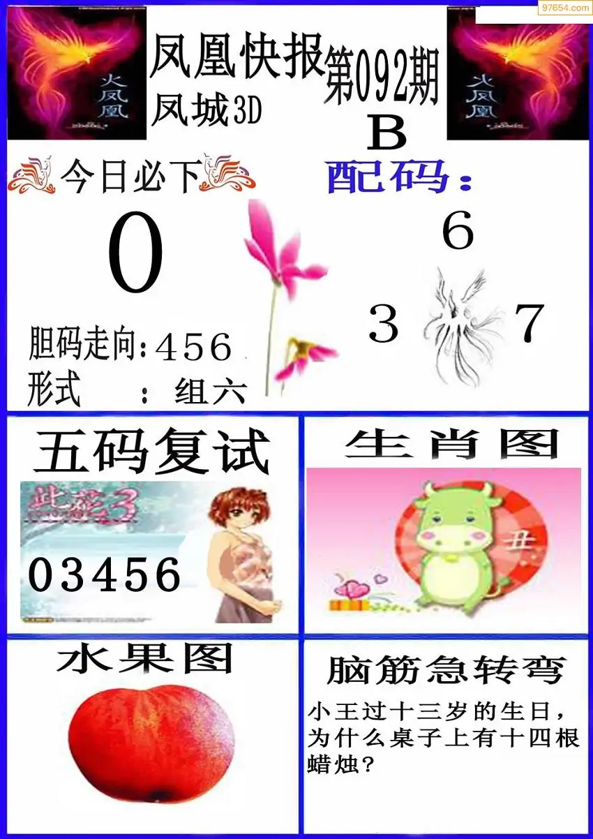 092期3D牛彩预测报+彩吧字谜报