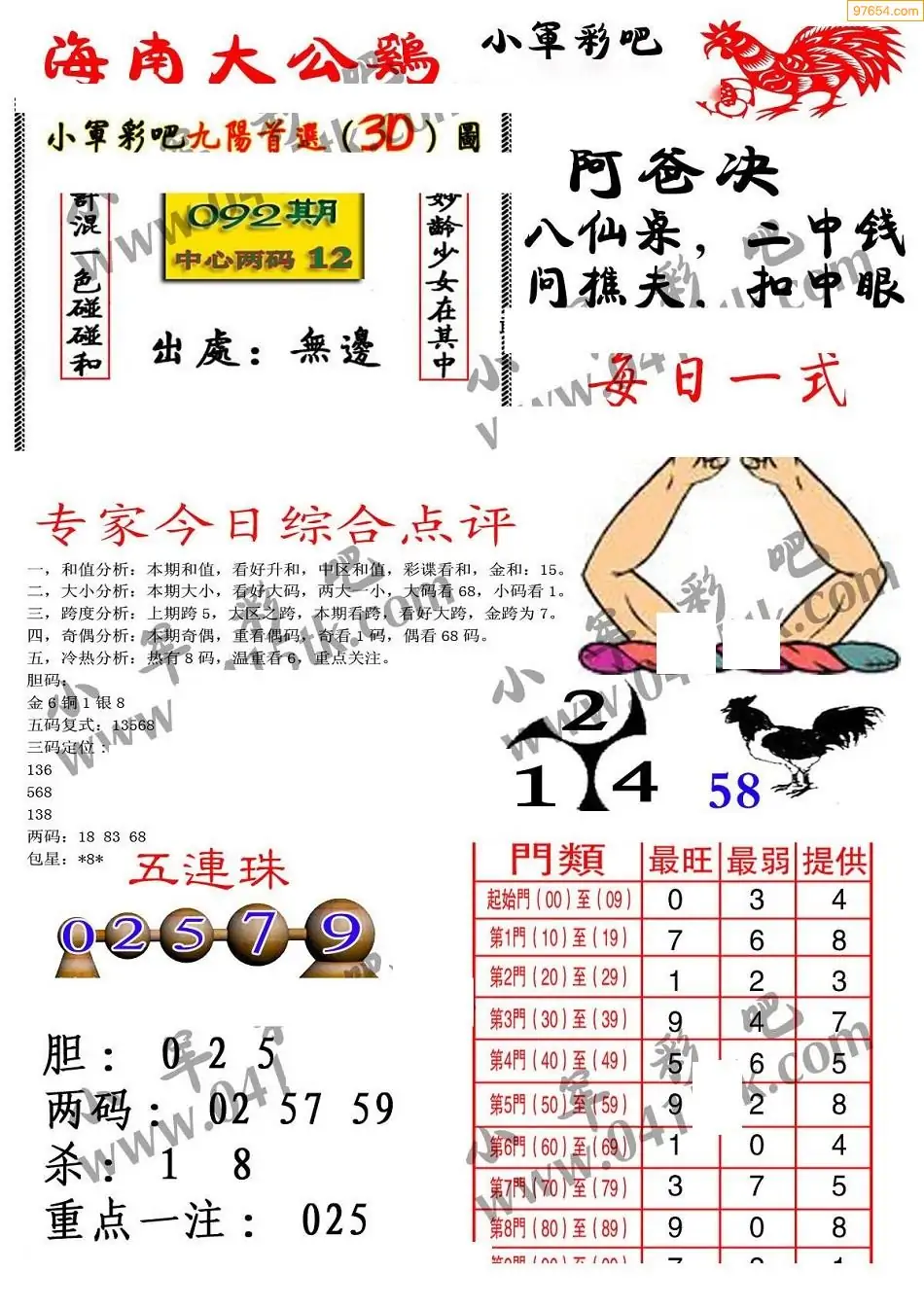 092期3D牛彩预测报+彩吧字谜报