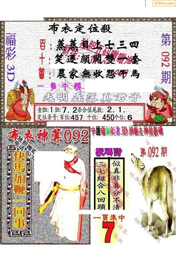 092期财神一句定码3D图库