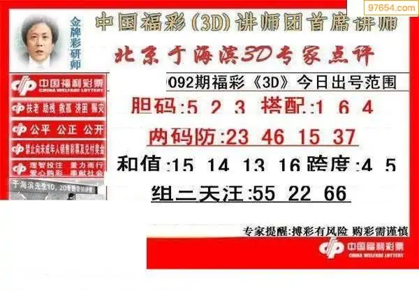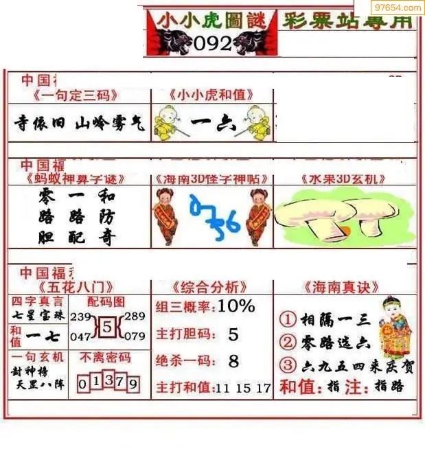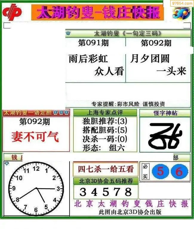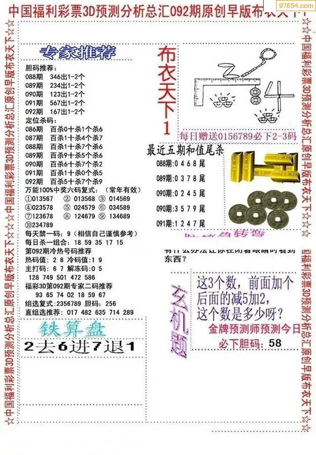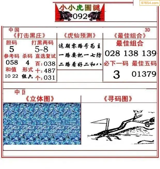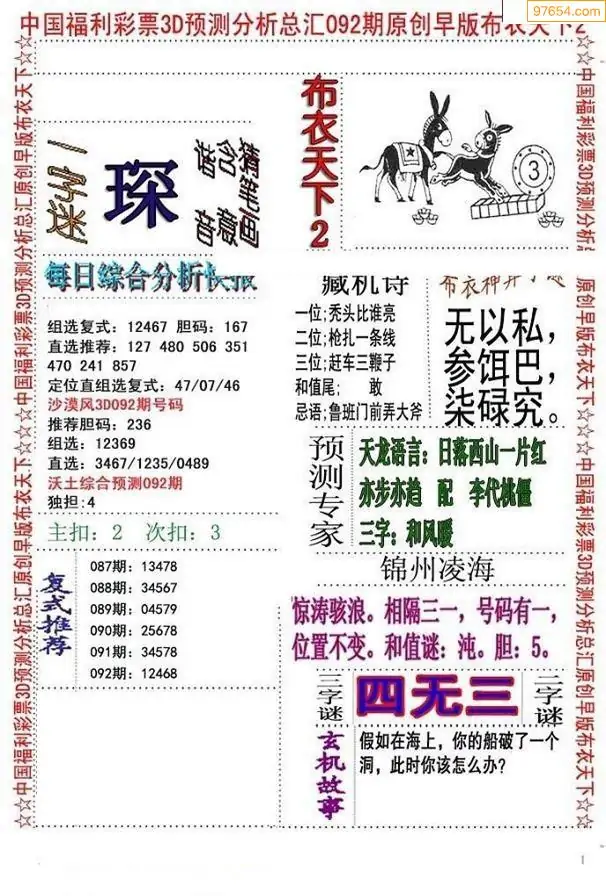 092期3D牛彩预测报+彩吧字谜报