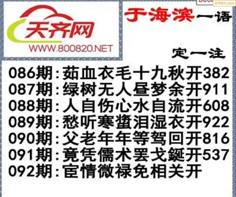 于海滨福彩3D26092期一语定一注