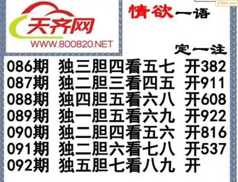 092期3D晚秋(和值)谜:本月初七 D:顺顺顺通