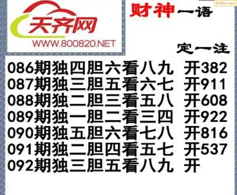 092期3D晚秋(和值)谜:本月初七 D:顺顺顺通