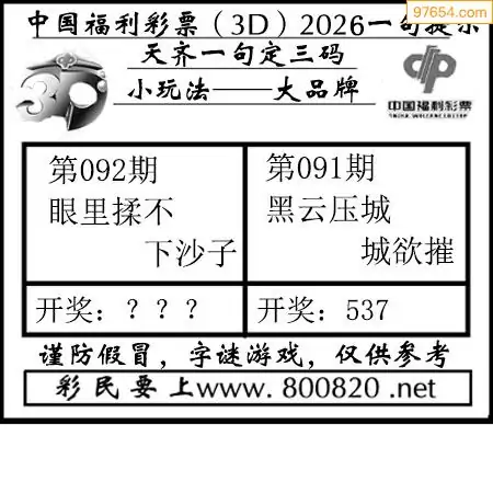 26年092期神舟3d今天图谜总汇
