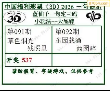 福彩3D26092期蓝仙子一句定三码图谜