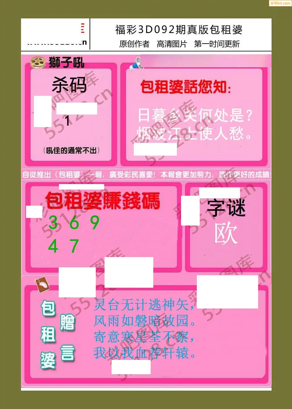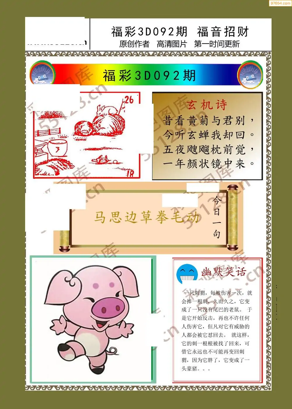 (2)26年092期本期3d图迷汇总_福彩3D图谜总汇图