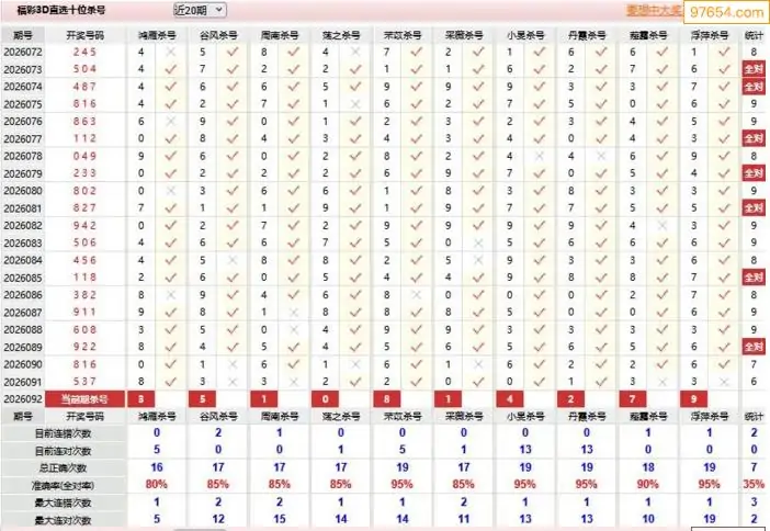 福彩3D盐都杂谈26年093期杀码猜想 5连中