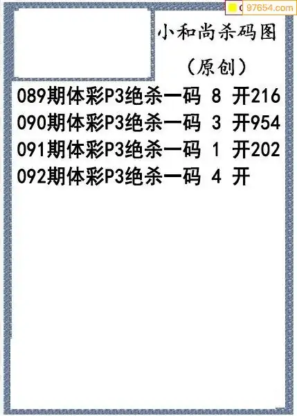 26年092期小和尚排列3杀码图