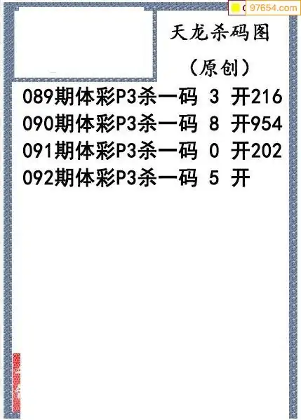 26年092期天龙体彩P3杀码图谜