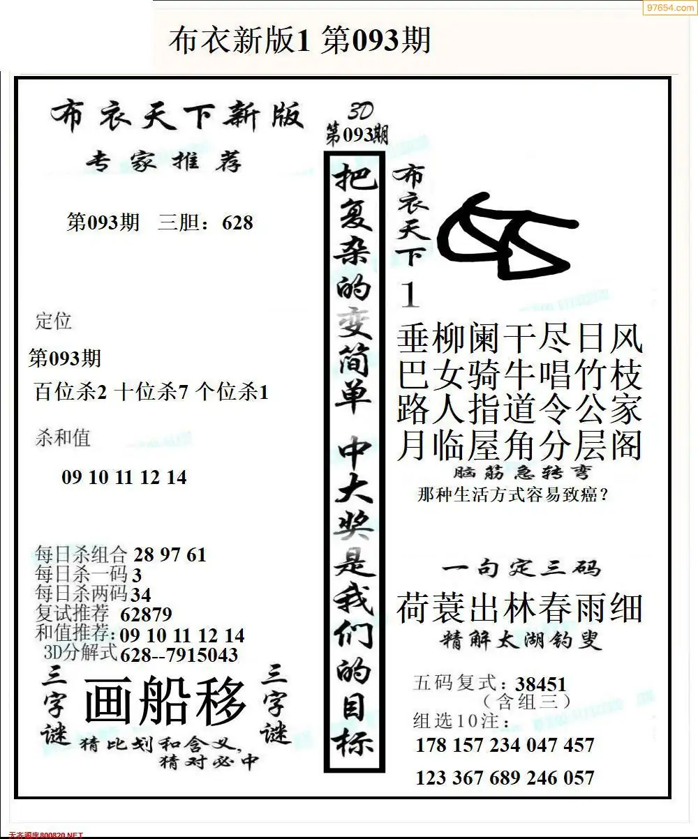 福彩093期3d真精华布衣+布衣早报(转载)