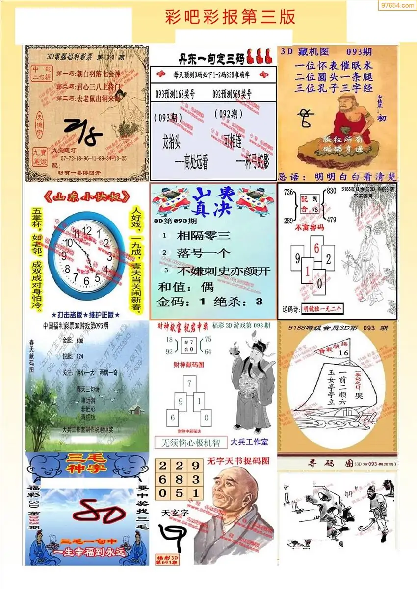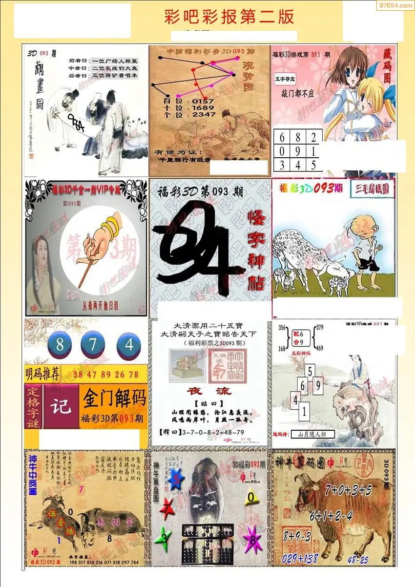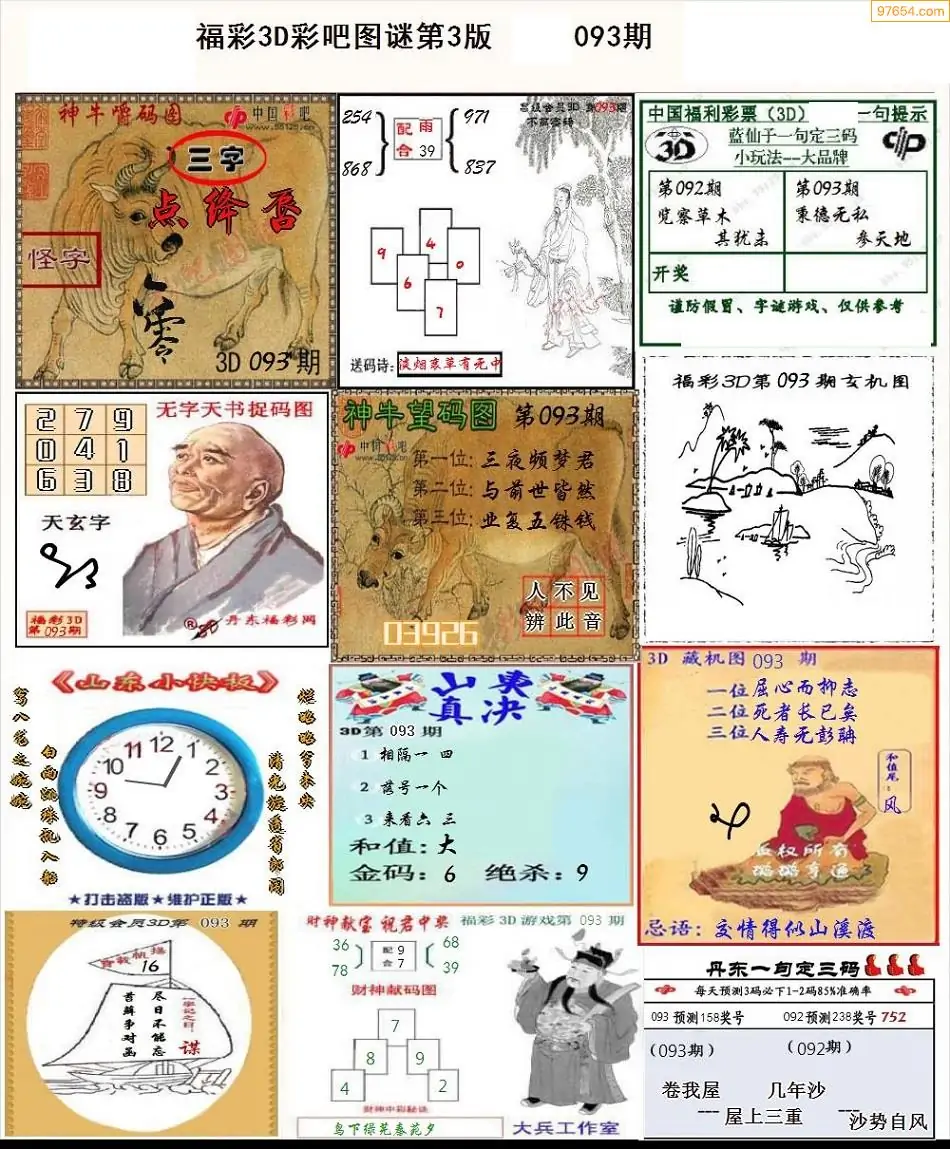 093期3D牛彩预测报+彩吧字谜报