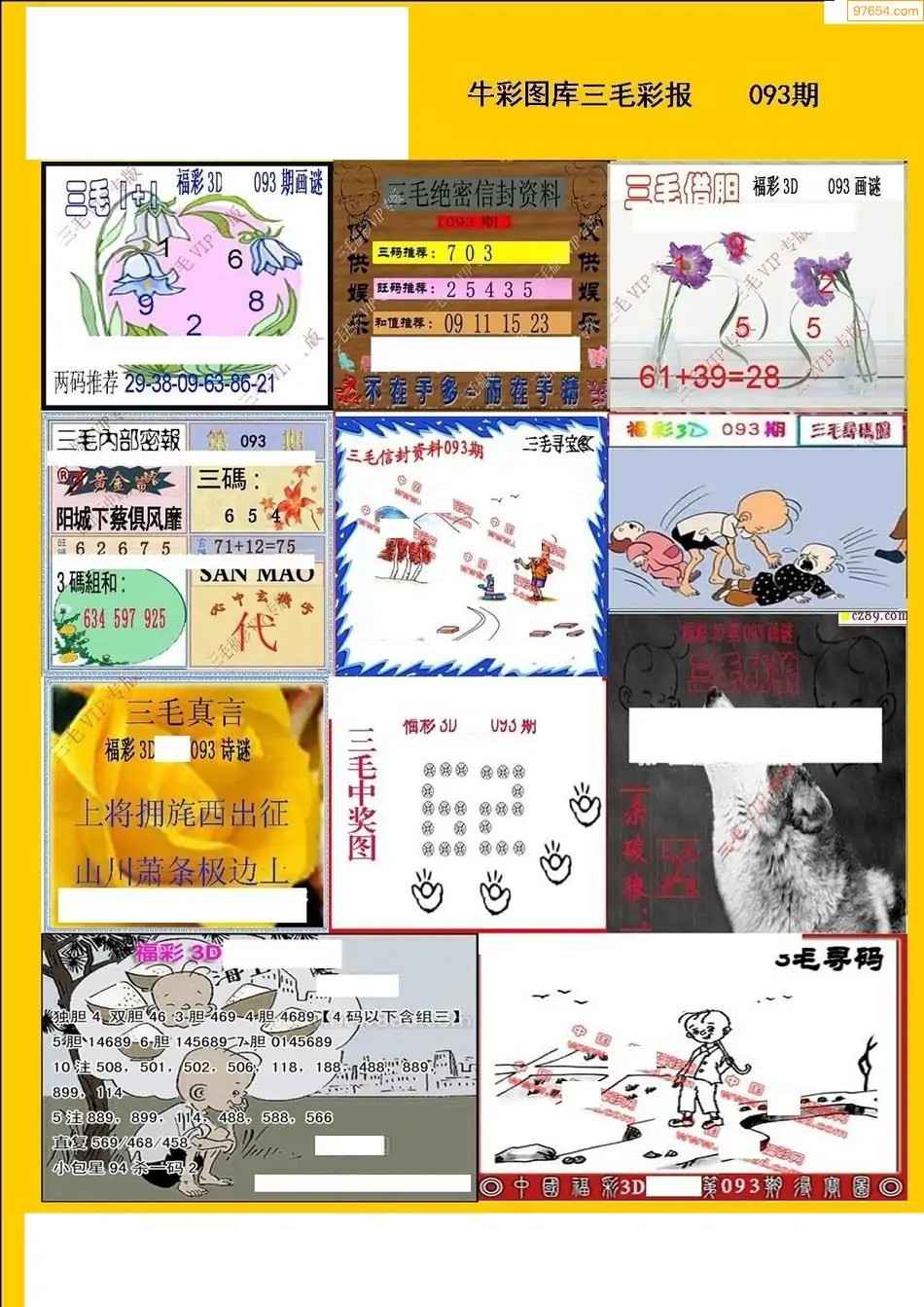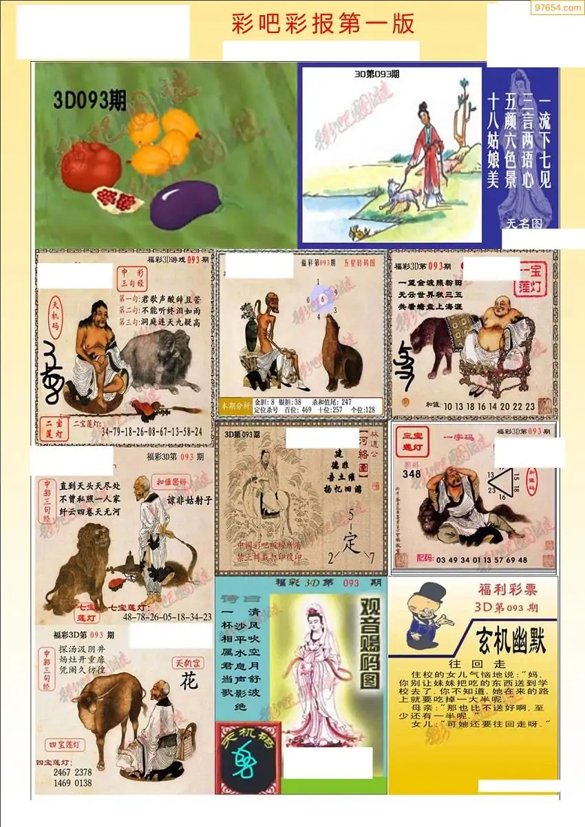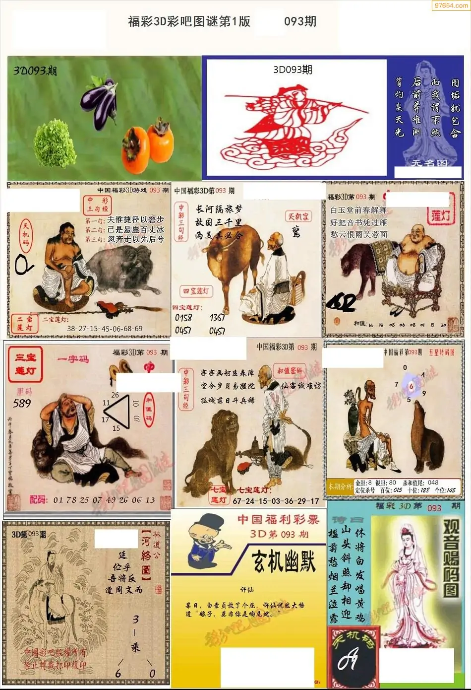 093期3D牛彩预测报+彩吧字谜报