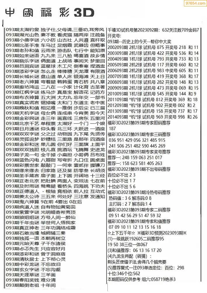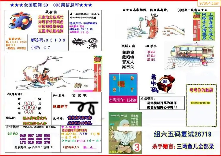 福彩3D093期天牛彩吧套图整合总汇
