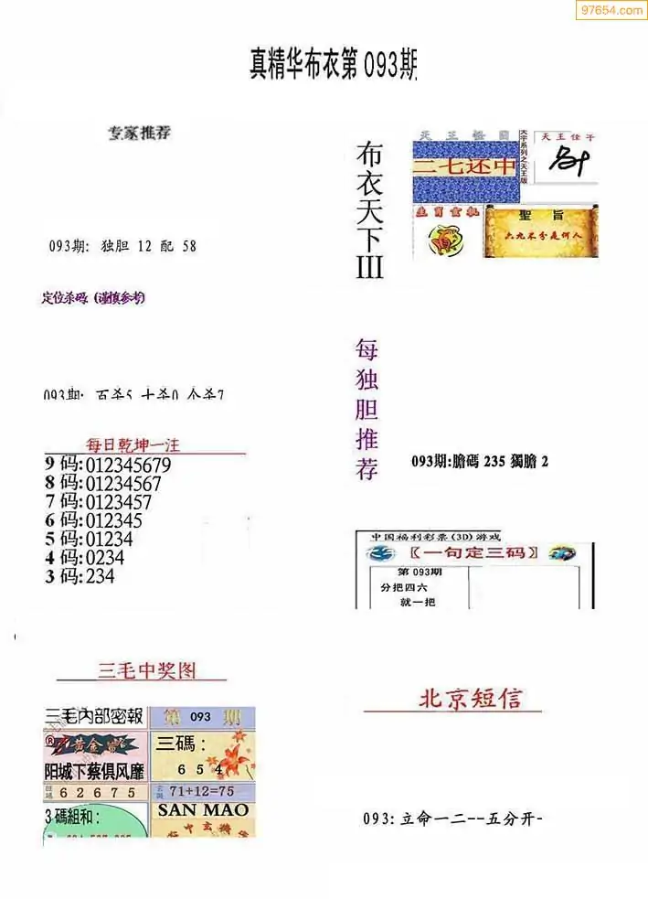 福彩093期3d真精华布衣+布衣早报(转载)
