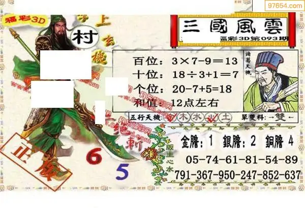 26年093期财神说彩3D综合图(原创)_3d财神到财神送胆