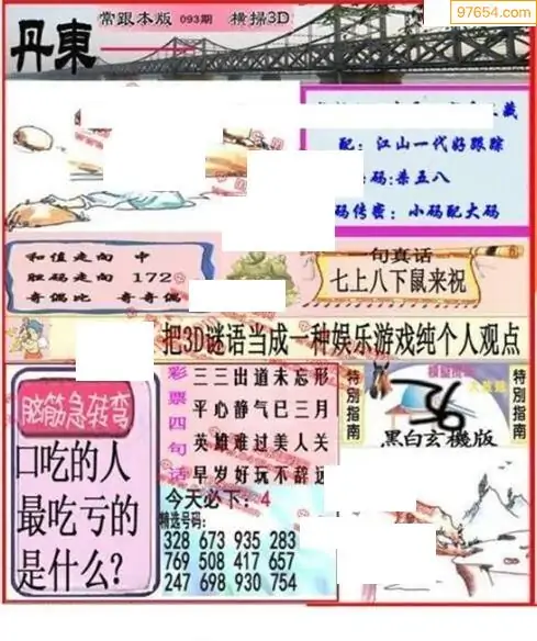 26年093期丹东全图3D图谜 _今日丹东先锋快报全图迷