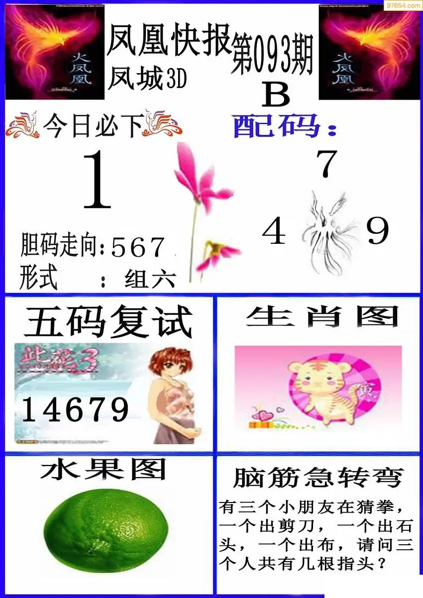 093期3D牛彩预测报+彩吧字谜报