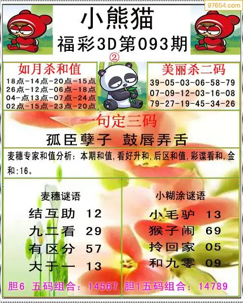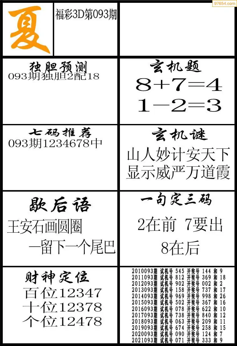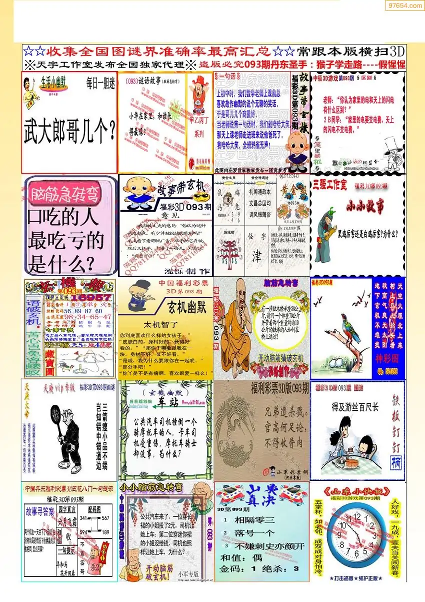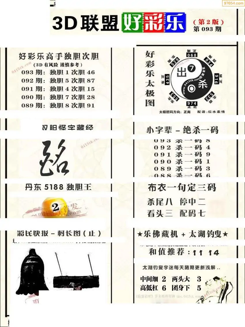 093期3D牛彩预测报+彩吧字谜报