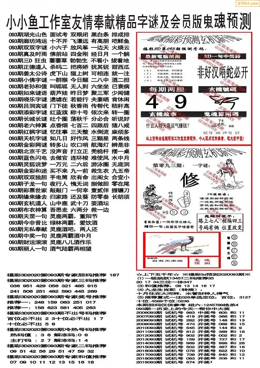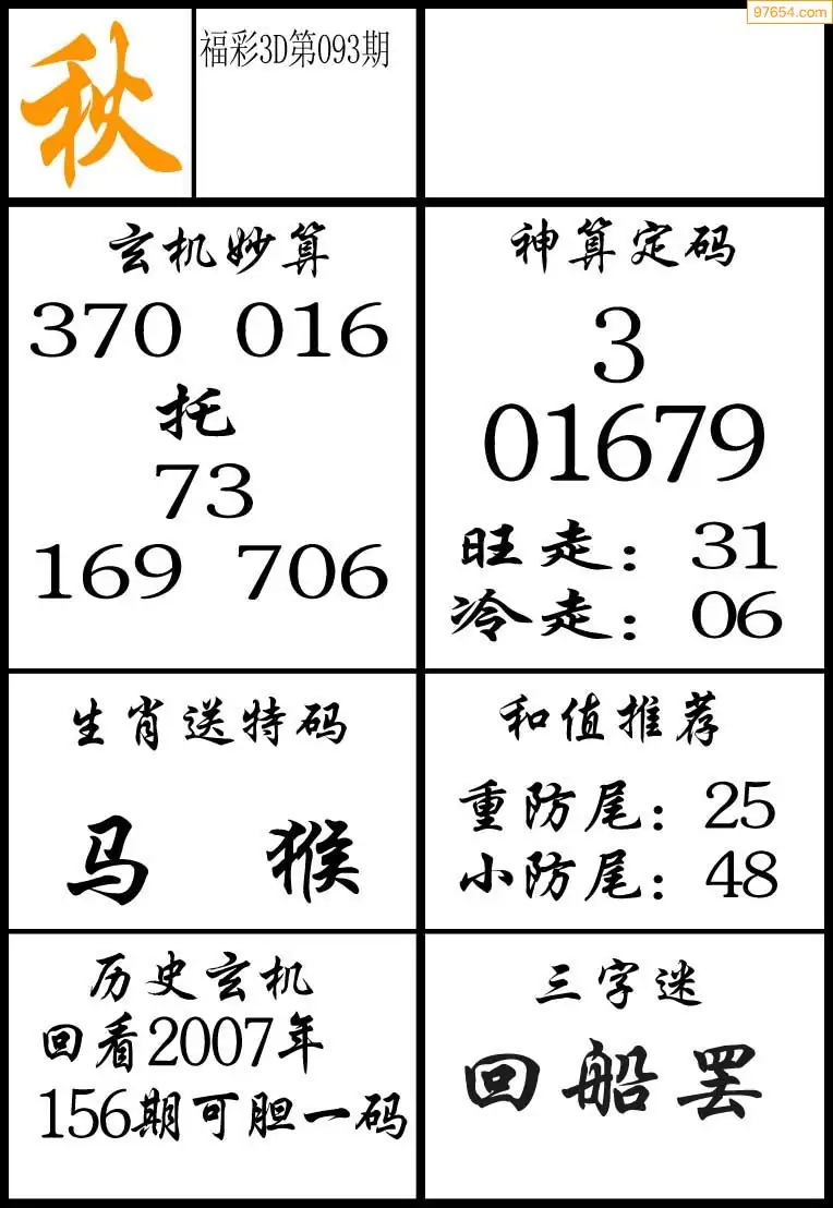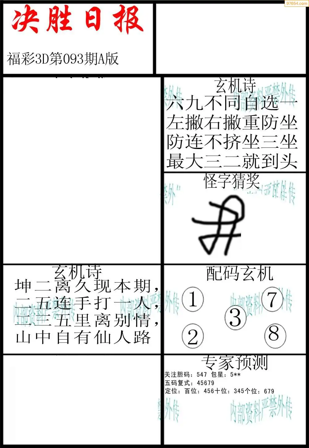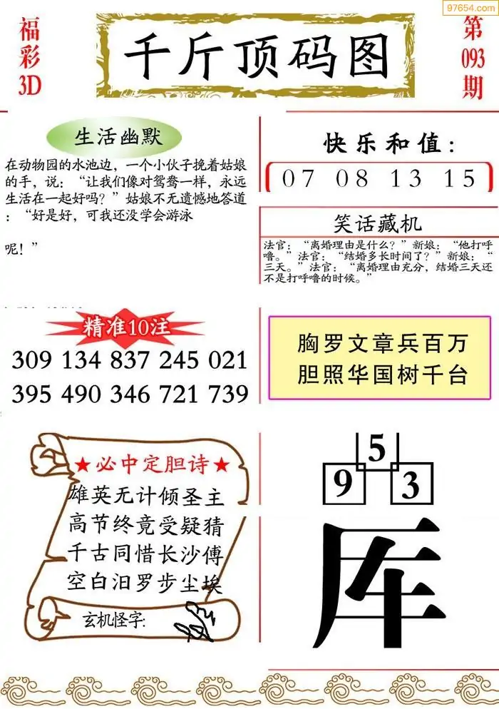 093期3D牛彩预测报+彩吧字谜报