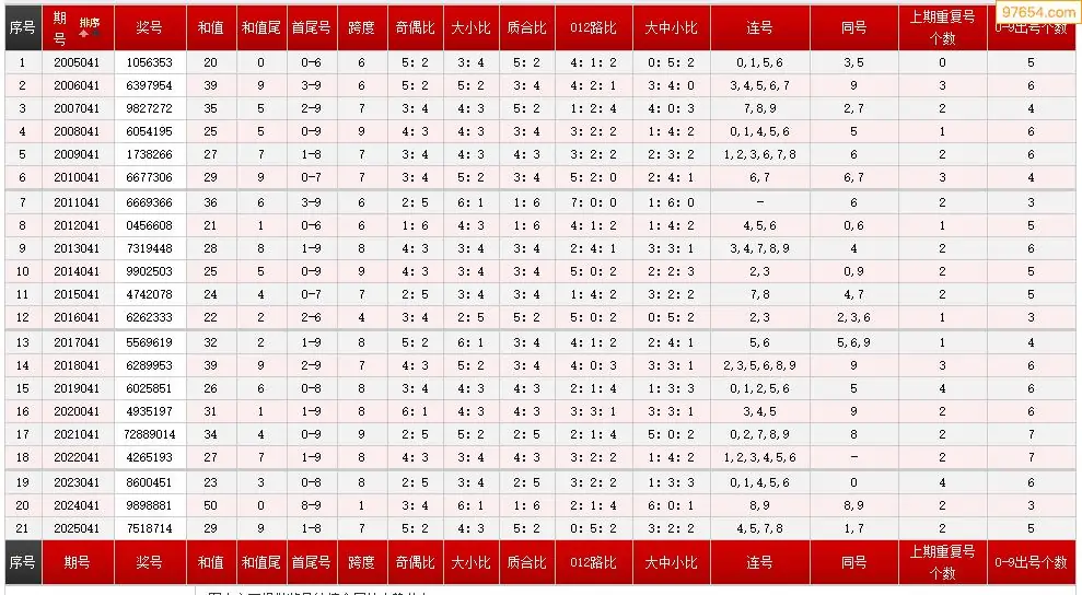 041期七星彩历史同期图表+走势图