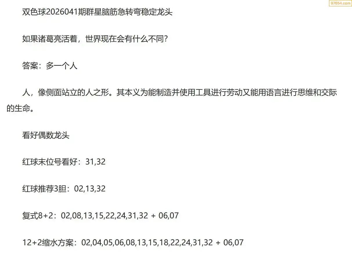群星双色球26年041期脑筋急转弯龙头谜语