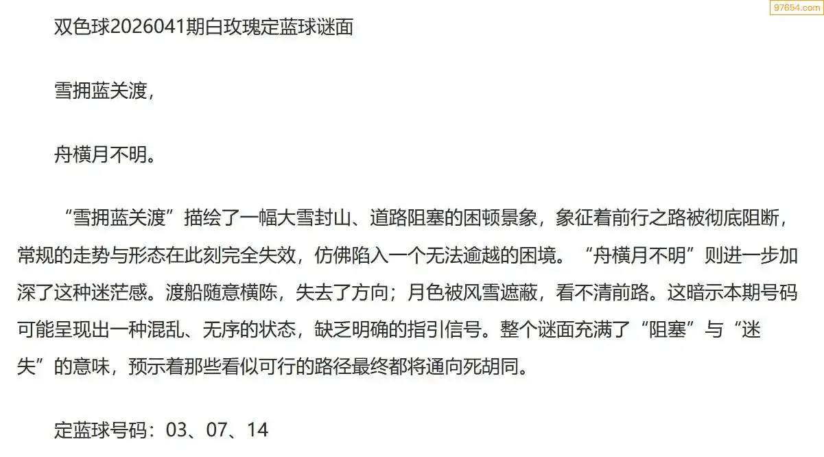 白玫瑰双色球26年041期定蓝球字谜