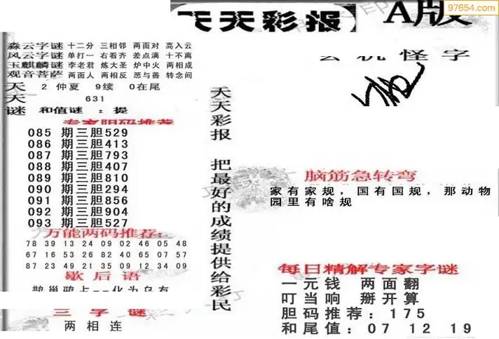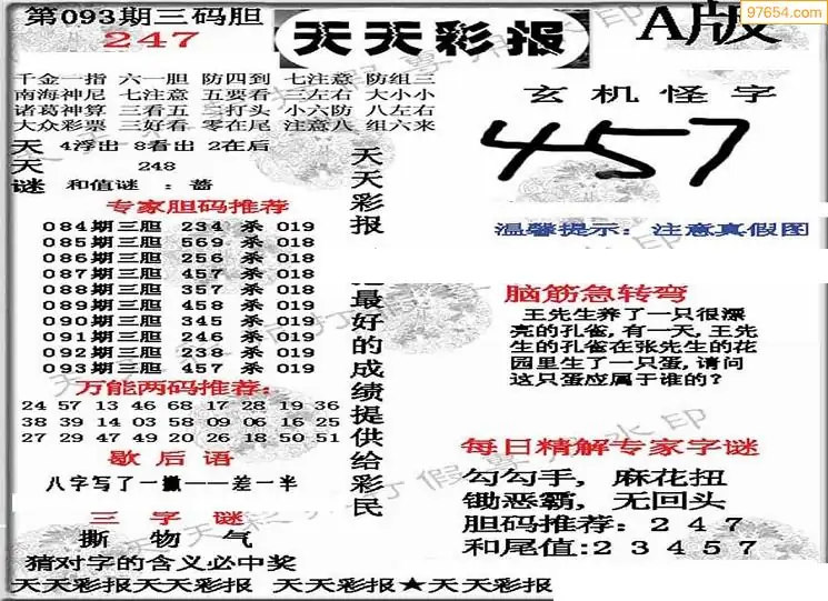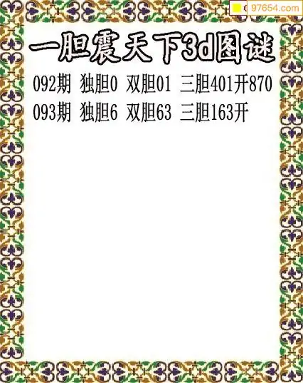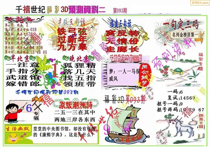 (3)2026093期3D预测总汇全图_福彩3d图谜字谜总汇