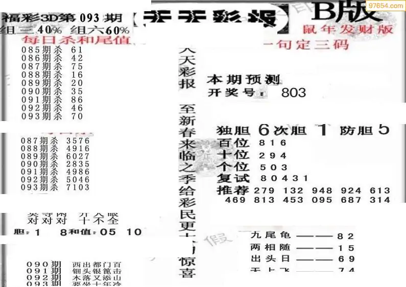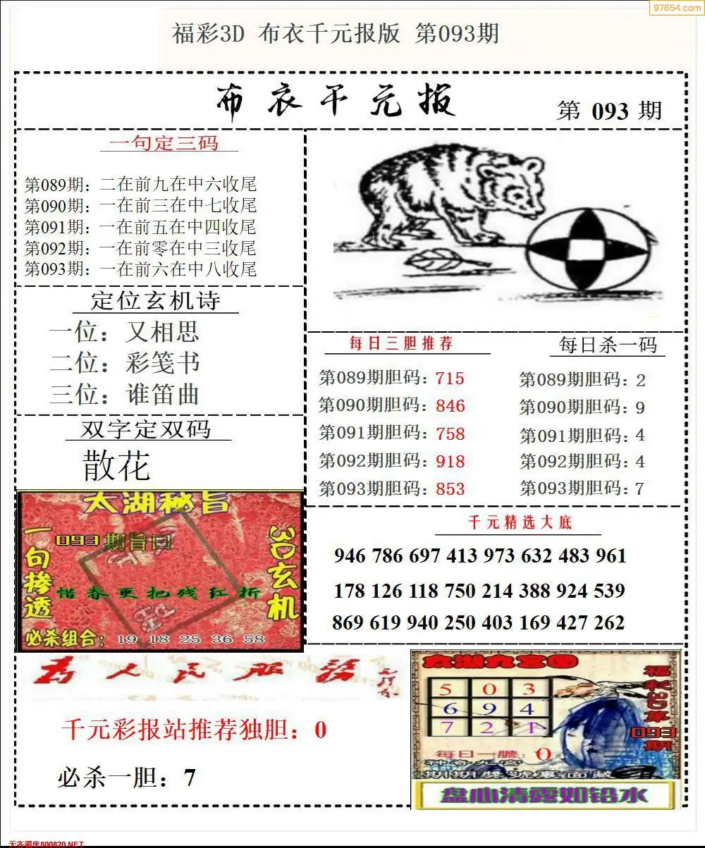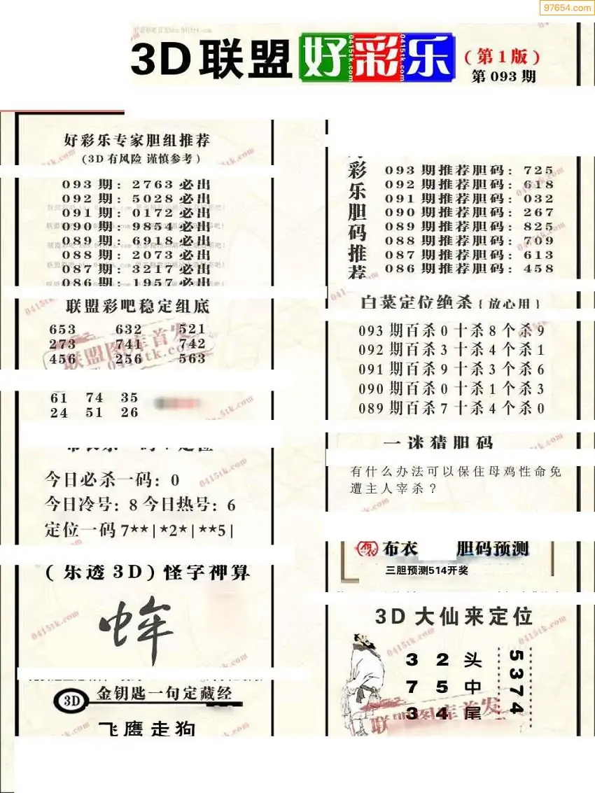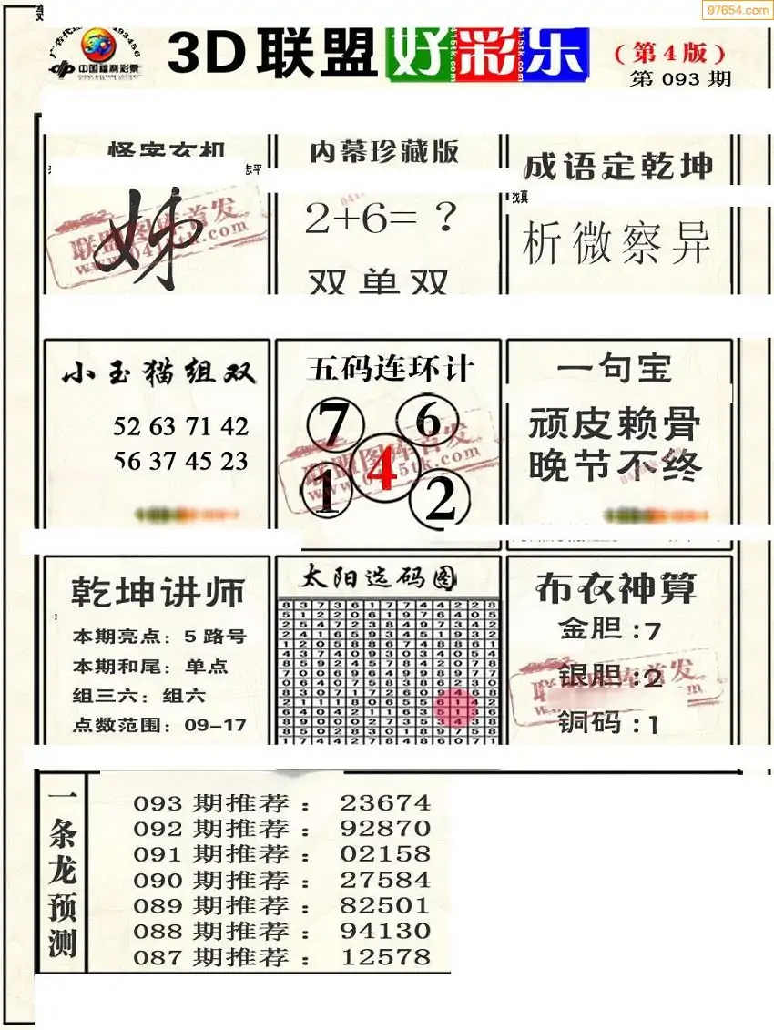 (2)26年093期本期3d图迷汇总_福彩3D图谜总汇图