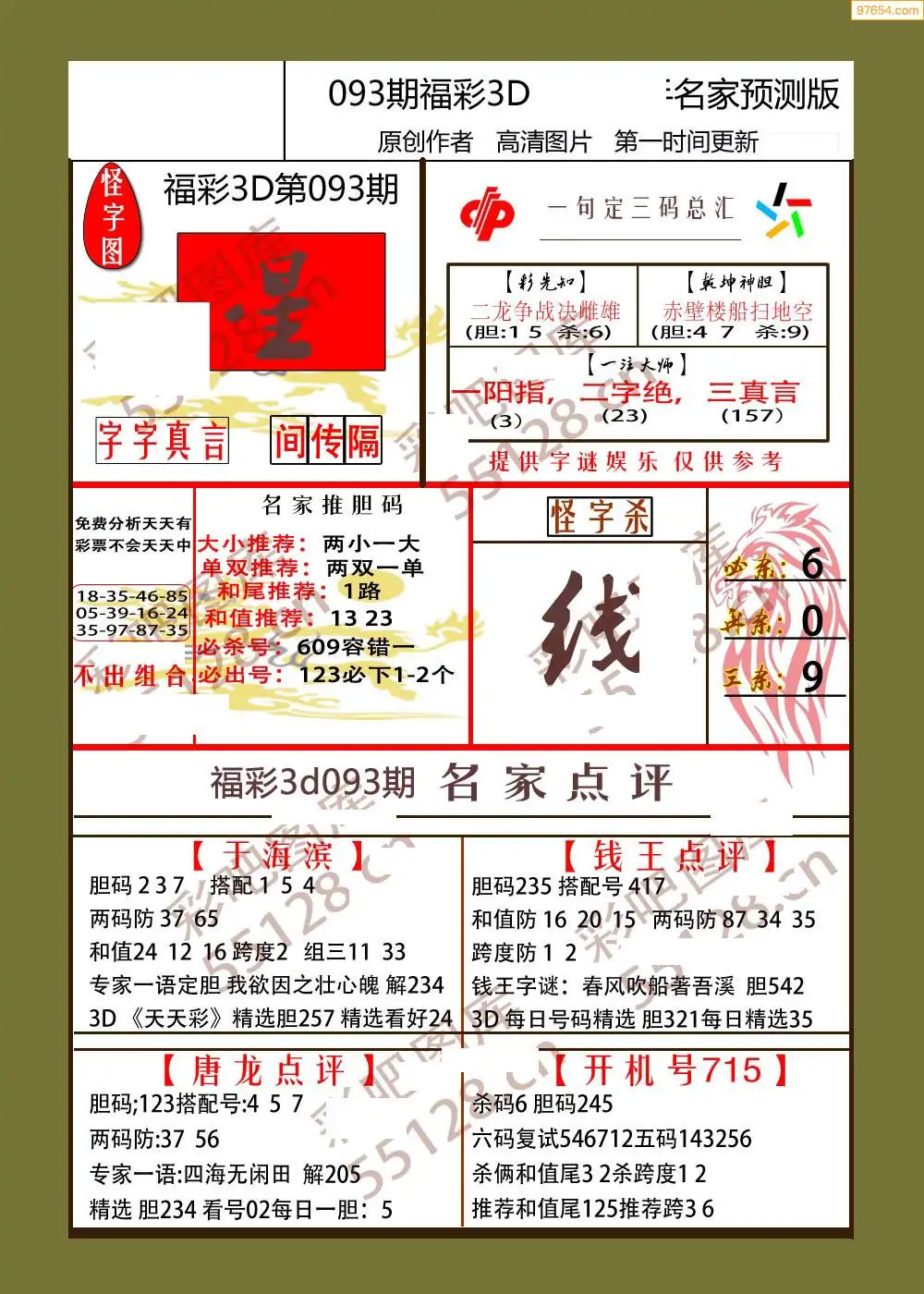 (3)2026093期3D预测总汇全图_福彩3d图谜字谜总汇