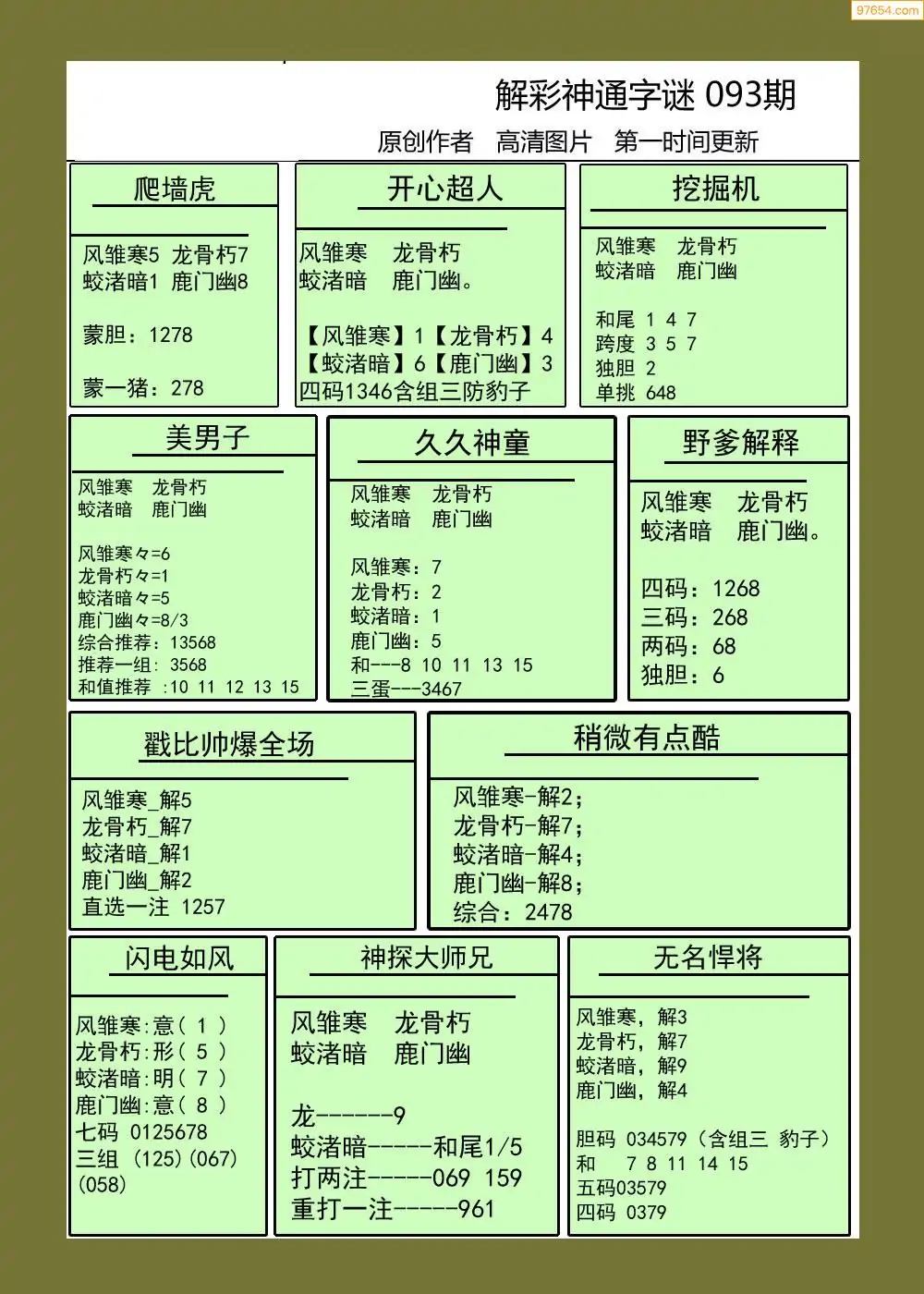 (2)26年093期本期3d图迷汇总_福彩3D图谜总汇图