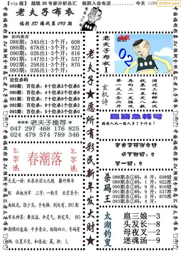 26年093期3d选号彩报图谜画谜