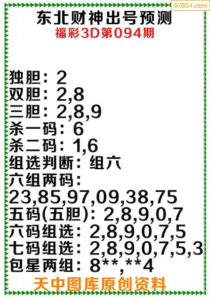 3d原创094期东北财神预测