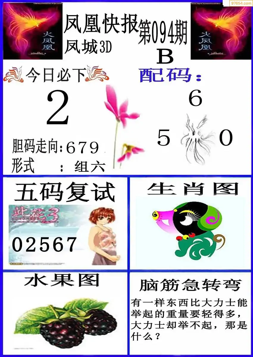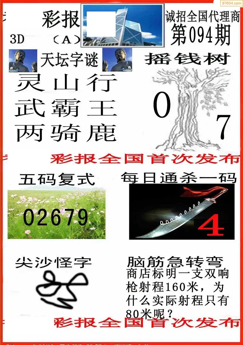 094期3D牛彩预测报+彩吧字谜报