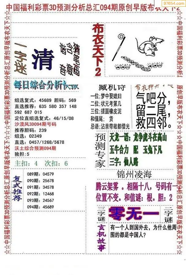 福彩094期3d真精华布衣+布衣早报(转载)