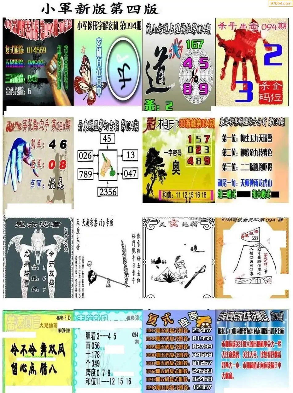 094期3D牛彩预测报+彩吧字谜报