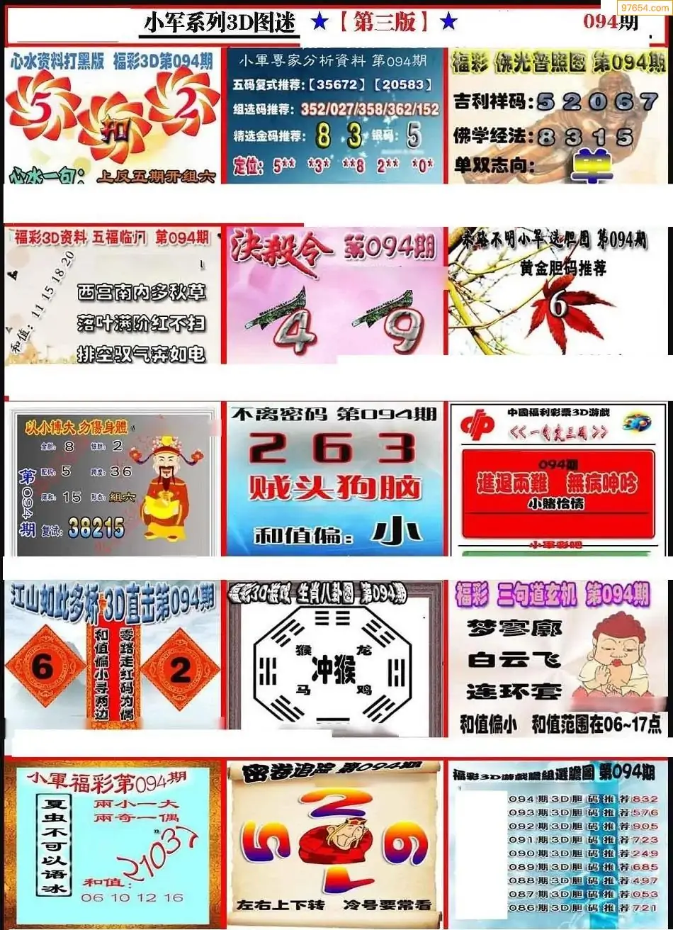 福彩3D094期天牛彩吧套图整合总汇