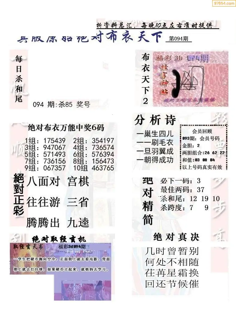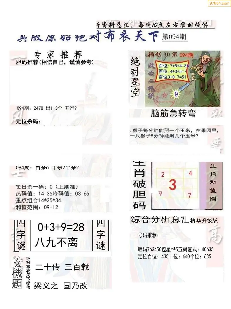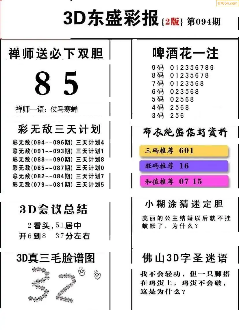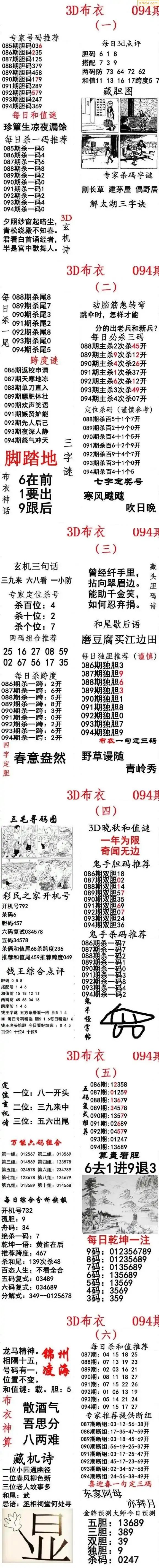 (2)26年094期本期3d图迷汇总_福彩3D图谜总汇图
