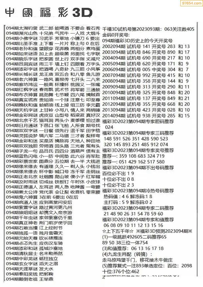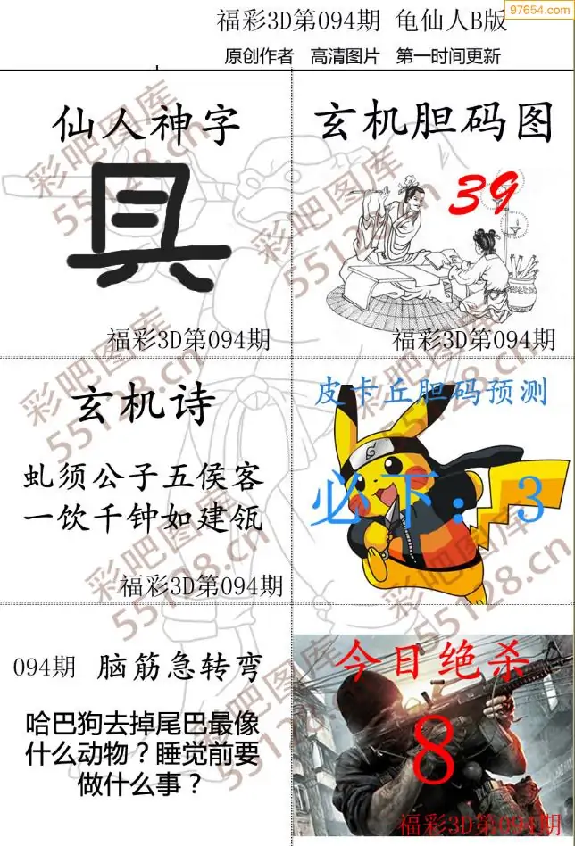 (3)2026094期3D预测总汇全图_福彩3d图谜字谜总汇