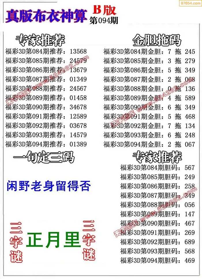 (2)26年093期本期3d图迷汇总_福彩3D图谜总汇图