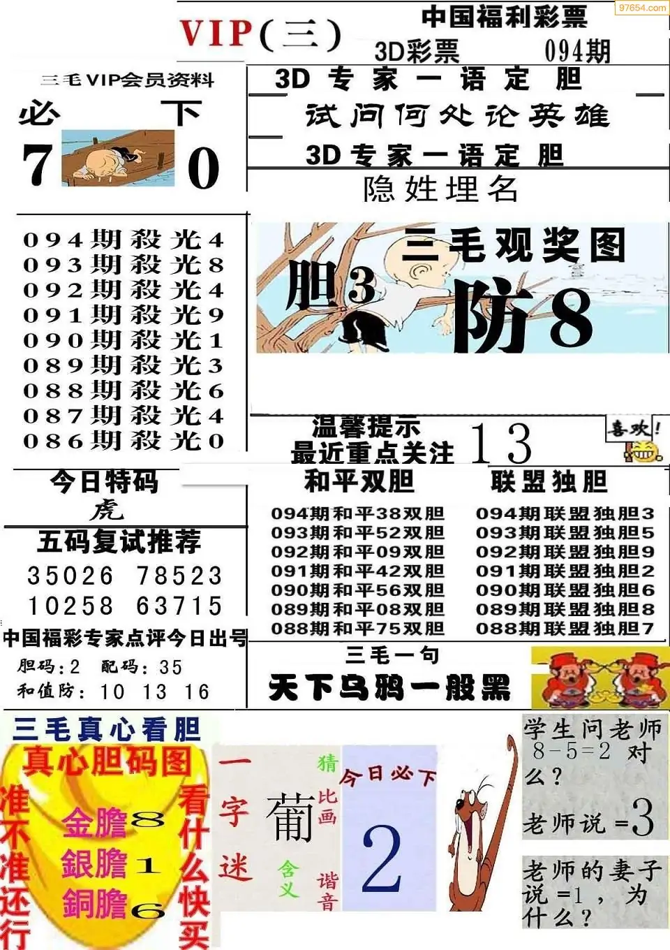 (3)2026093期3D预测总汇全图_福彩3d图谜字谜总汇