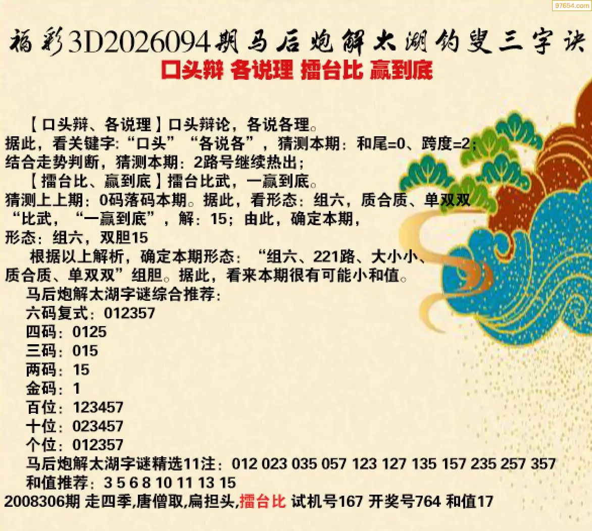 26094期福彩3d太湖钓叟三字诀