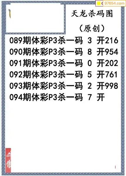 26年094期天龙体彩P3杀码图谜