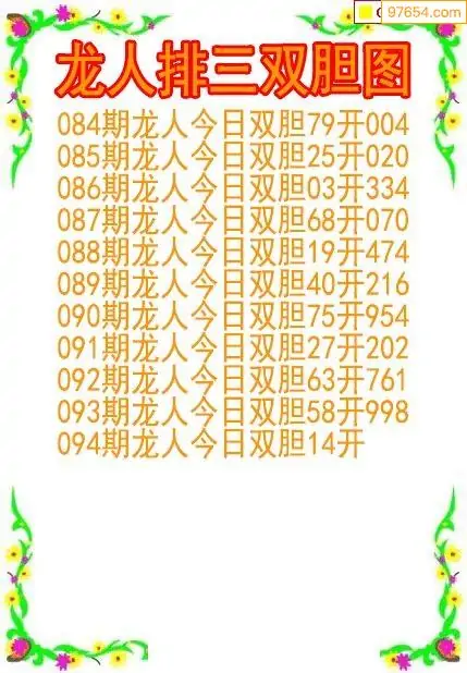 26094期龙人排列3双胆图